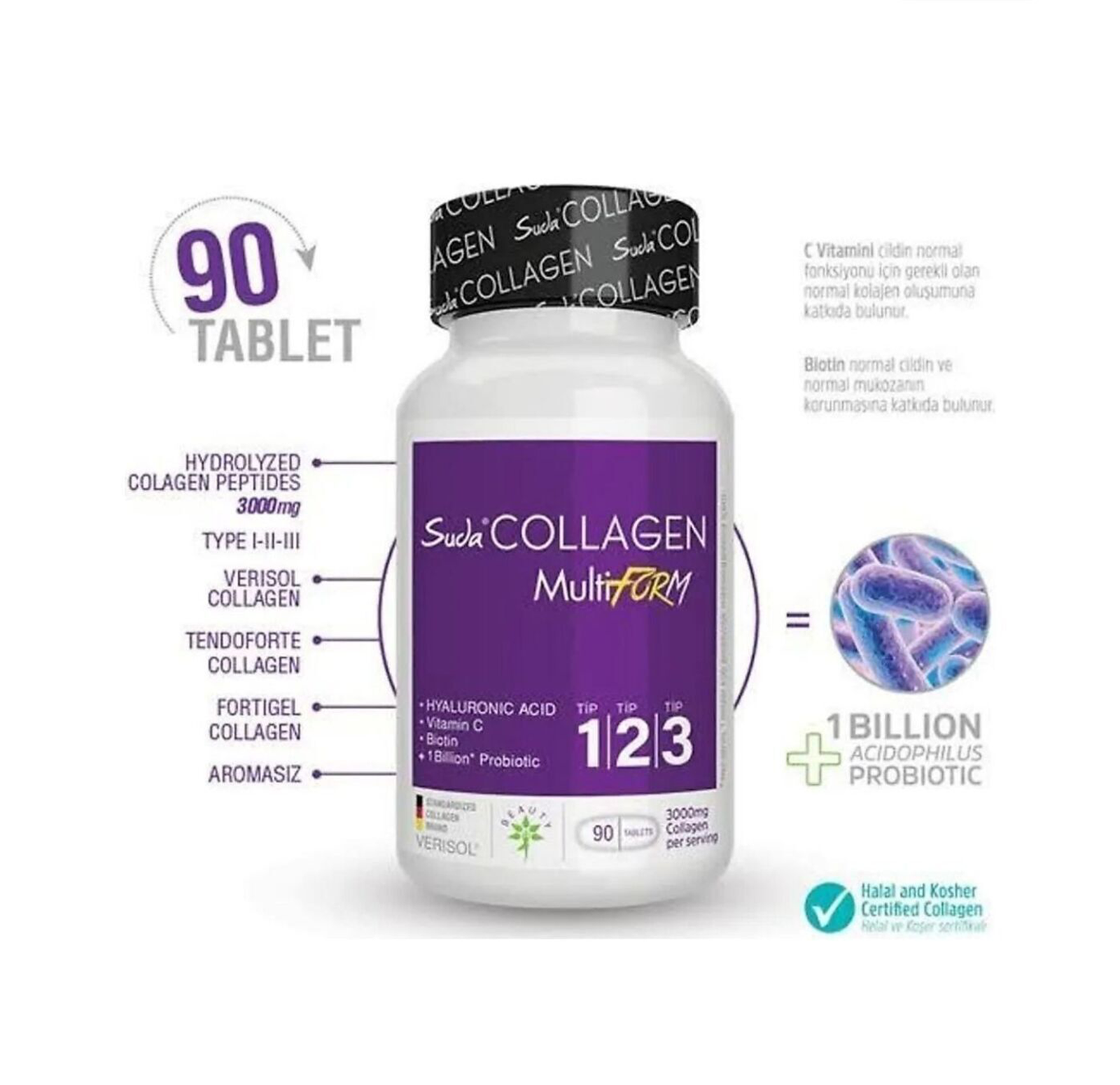 كولاجين ملتي فورم (Suda Collagen Multiform): مكمل غذائي يجمع بين الكولاجين والبروبيوتيك لدعم الجمال والصحة الداخلية.